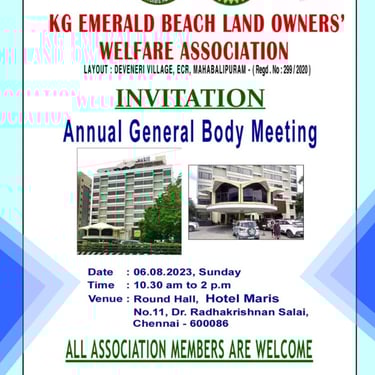 3rd Annual General body of KG Emerald Beach Land Owners Welfare association meeting held on 06-08-2023 at Hotel Savera, Chennai.