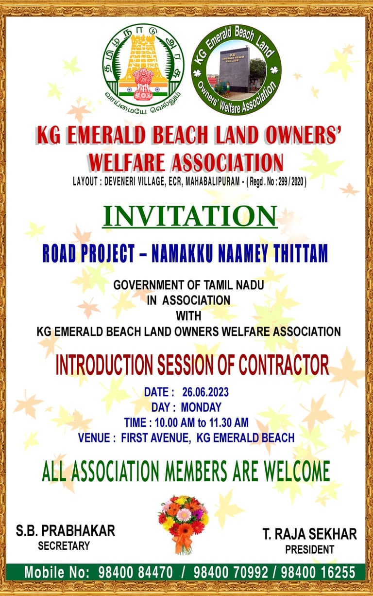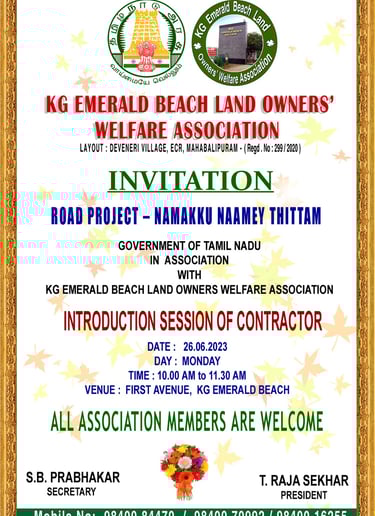 Introduction meeting was held on 26-06-2023 with the contractor assigned by the government for the first avenue road laying project under namakku naame scheme. Later works were done and updated.